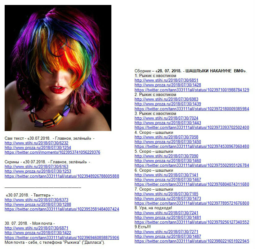 Скрин ссылок на - «30.07.2018. - Главное, зелёный» -