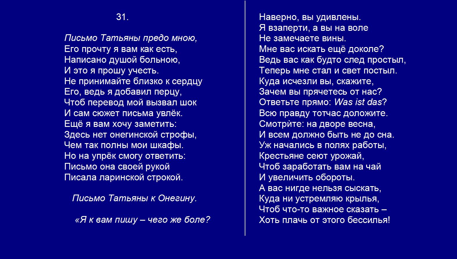 Евгений Онегин плюс Гл. 3. 31-письмо Татьяны1
