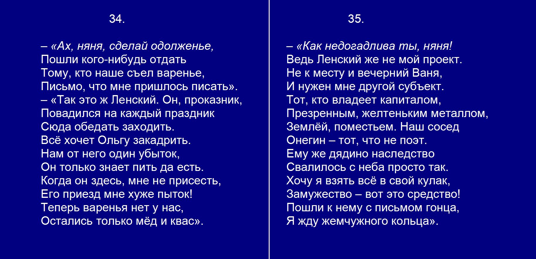 Евгений Онегин плюс Гл. 3. 34-35 Ах, няня, сделай