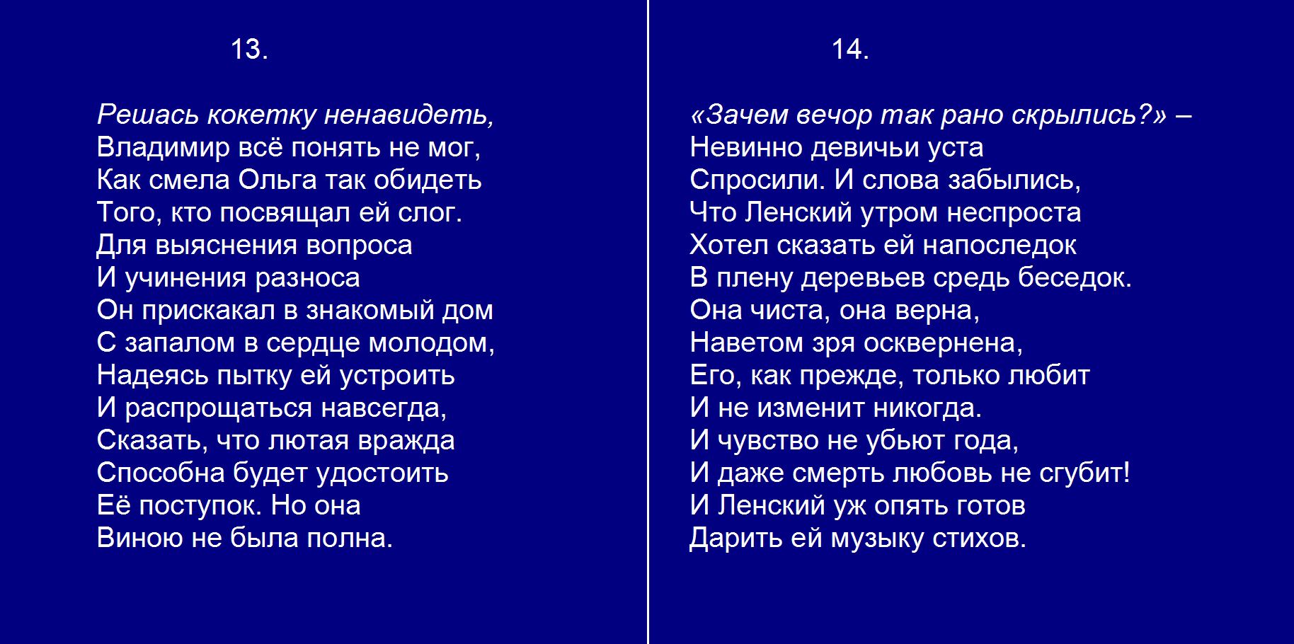 Евгений Онегин плюс Гл. 6. 13-14 Решась кокетку