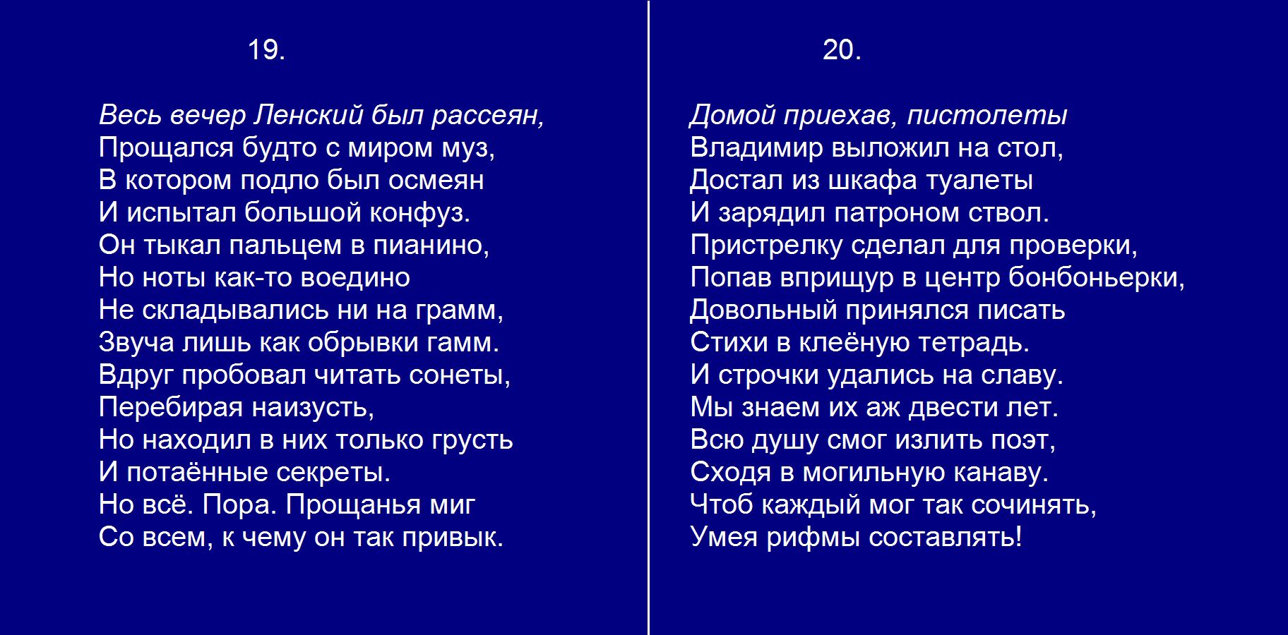 Евгений Онегин плюс Гл. 6. 19-20 Весь вечер Ленски