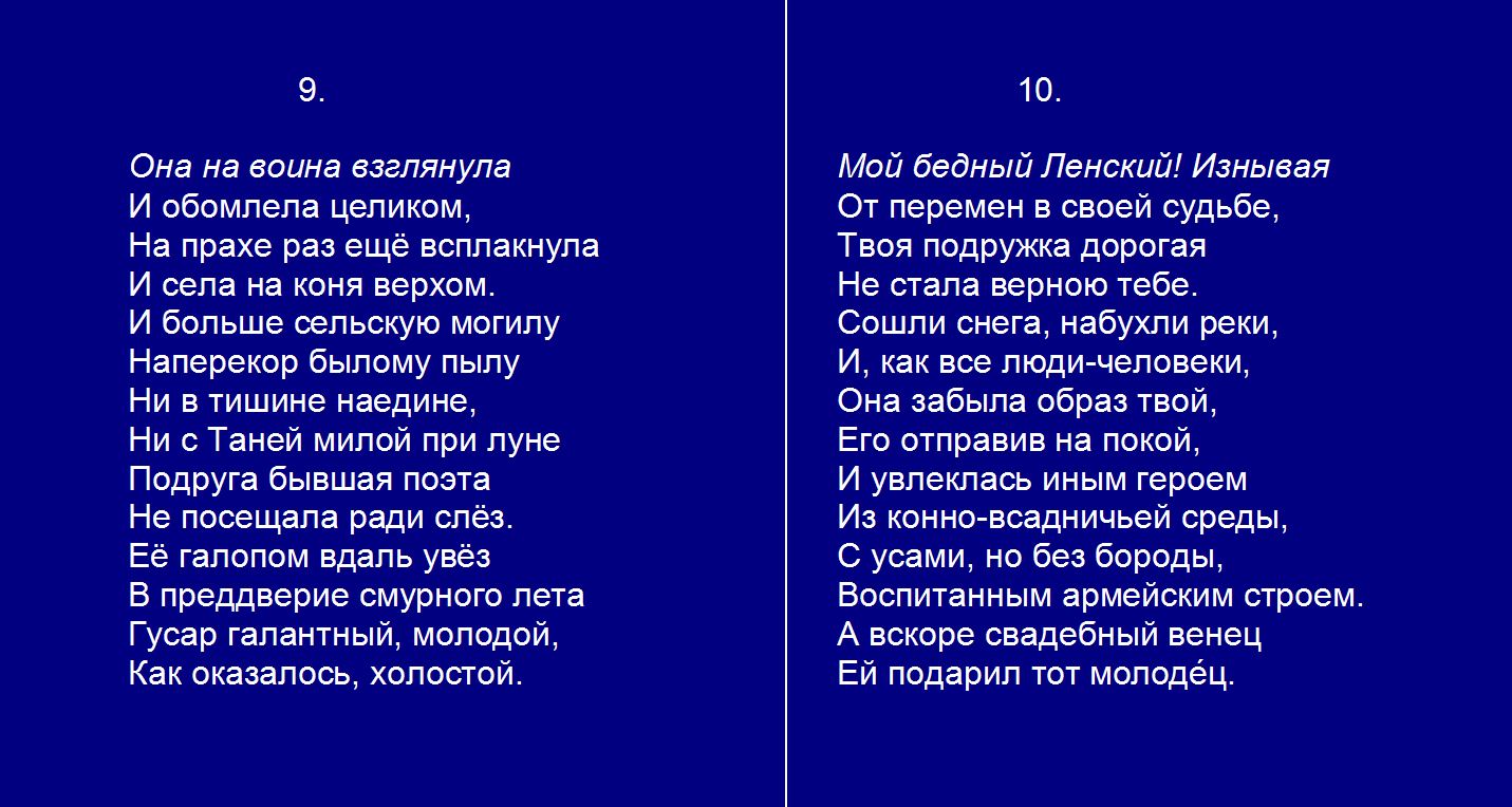 Евгений Онегин плюс Гл. 7. 9-10 Она на воина