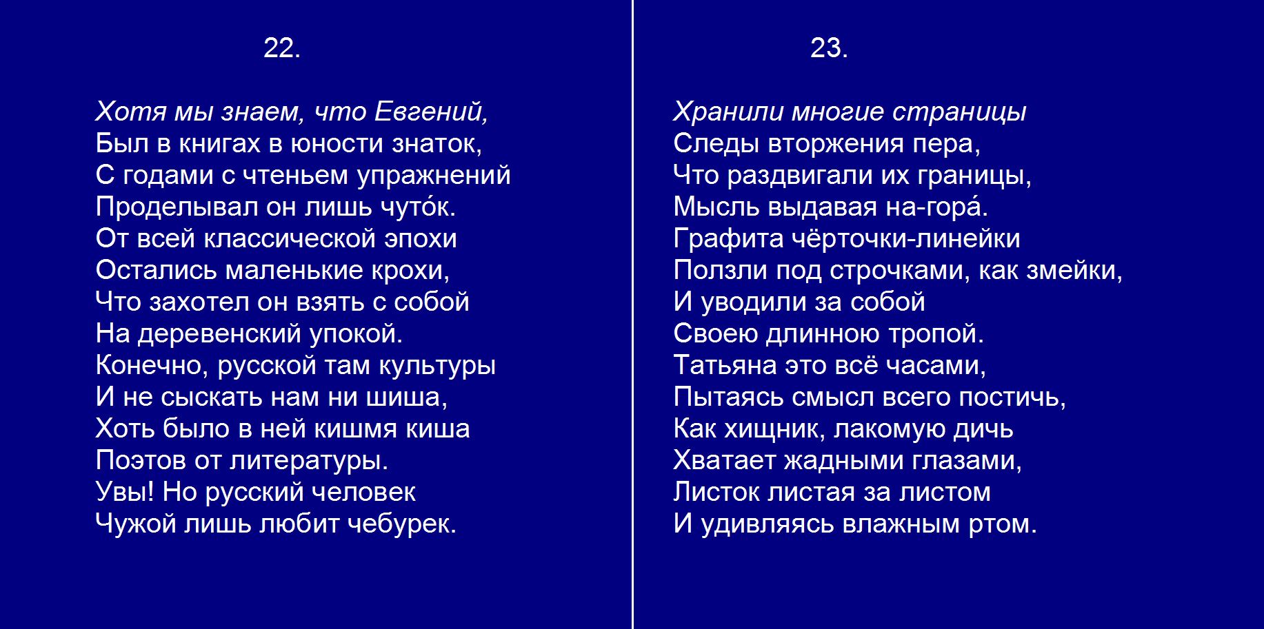 Евгений Онегин плюс Гл. 7. 22-23 Хотя мы знаем что