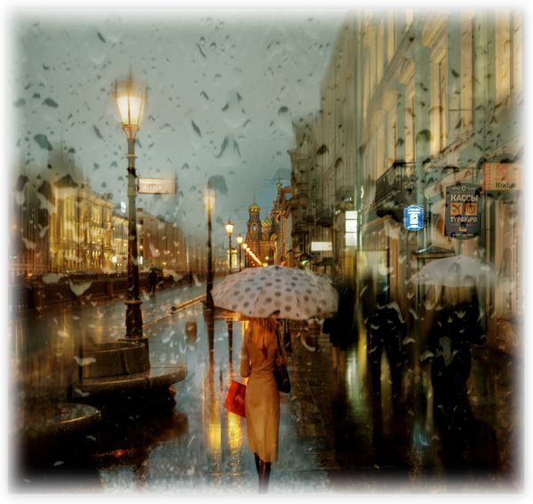 Фотограф из Санкт-Петербурга часто показывает различные достопримечательности, увиденные им через стекло, по которому стекают капли дождя.
