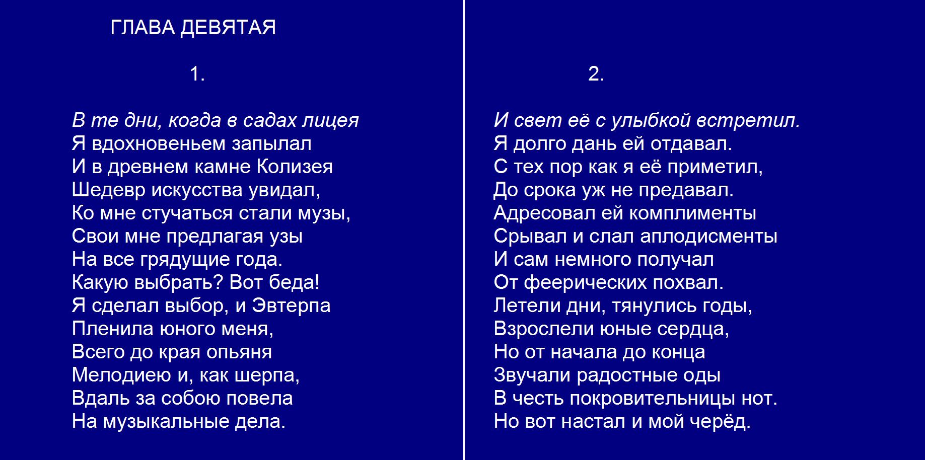 Евгений Онегин плюс Гл. 9. 1-2 В те дни когда