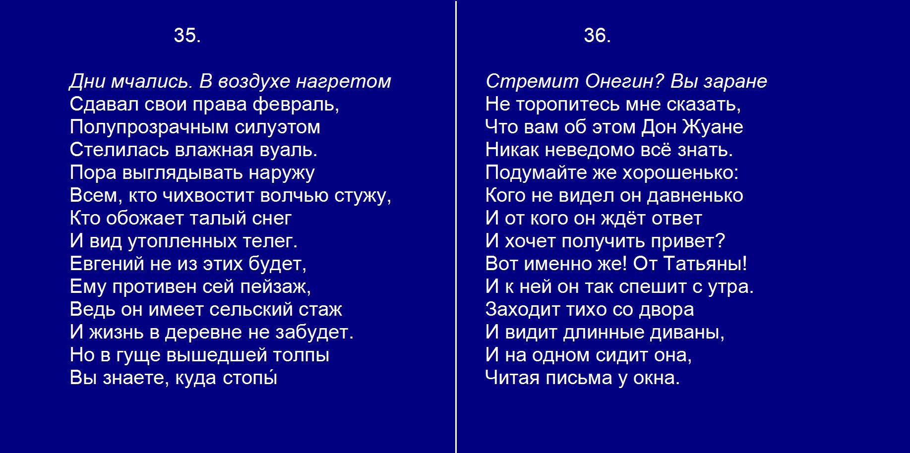 Евгений Онегин плюс Гл. 9. 35-36 Дни мчались