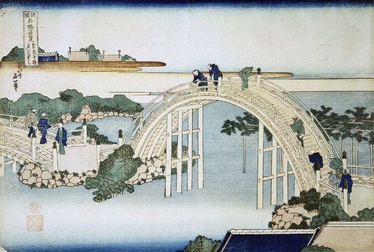 Кацусика Хокусай. Мост у храма Камэйдо Тэндзин. 1834