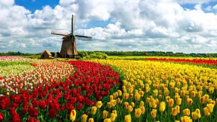 Тюльпанов разноцвет поля…