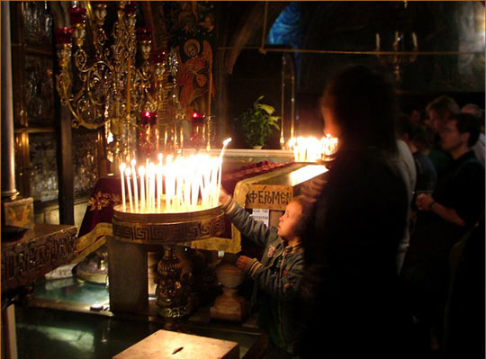 Все крепче женщина свечу сжимала-
