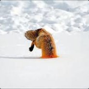 Лиса подпрыгнула и мордочкой в снег,