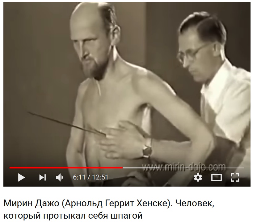 " Для Мирина Дажо (Арнольд Геррит Хенске) его выступления не были целью получения славы или богатства, он хотел показать миру, что есть нечто большее, чем реальность, и человек может существовать вне материального мира. Мирин Дажо говорил, что физическая неуязвимость — это первый этап. Второй этап — донести всему миру сообщение, что люди должны отказаться от материалистического пути развития. Они должны понять, что существует высшая сила, источник, который работает через него и который дал ему эту неуязвимость, как ясный знак того, что существует нечто большее за пределами материалистической картины мира. Он утверждал, что доносит послание мира, а материалистический путь человека может привести к нищете и войне. Во время демонстрации своих удивительных возможностей Дажо уходил в иную реальность, для которой его физическое тело как бы не существовало, а поэтому повреждать «было нечего». Все происходившее с ним также говорит об условности всего нашего существования. Иными словами, физическая реальность с ее жесткими и ограниченными законами представляет собой только слепок или проекцию несравненно более глубокого и многогранного тонкого мира…"