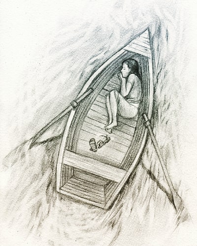 весла брошены в воду,