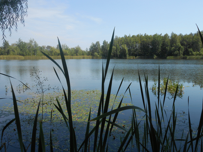 и заросли рогозом берега,