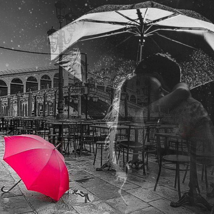 И под зонтом, прижавшись друг к другу,