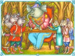 "Ну то-то ж, - говорит им Слон, - смотрите!