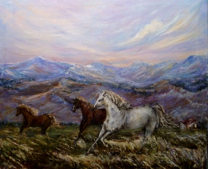Вечер. Ковыль. Лошади.