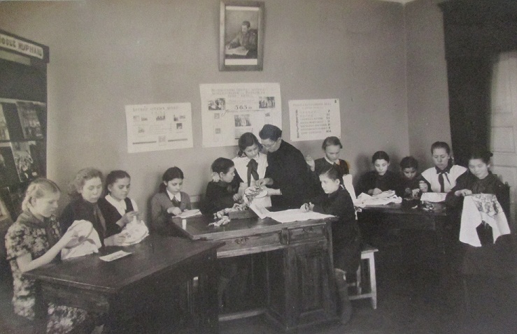 проводит занятие по рукоделию со спасёнными девочками.