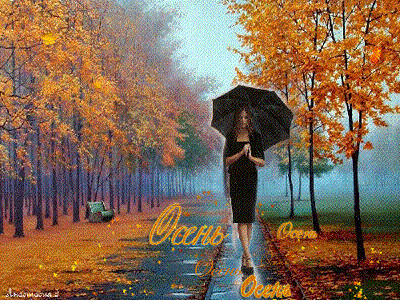 Гуляет осень под дождём,