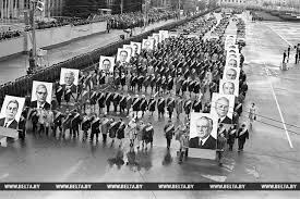 из шествий под портретами голов.