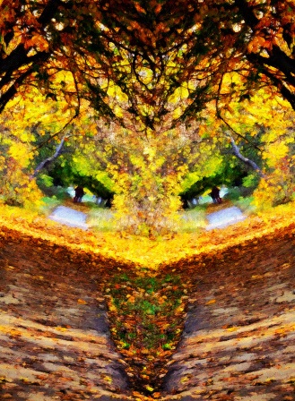 И противясь уходу, с безмятежностью взгляда, не грозясь непогодой, ЗОЛОТИТ ЛИСТОПАДОМ!..