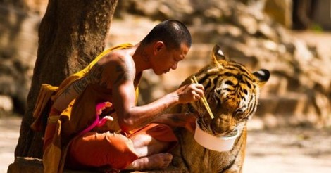 Тигр на запах к парню пришел