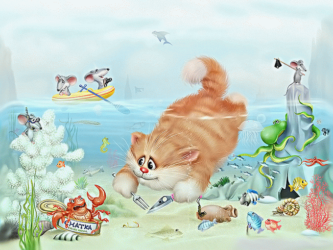 и как ныряет в воду кот,