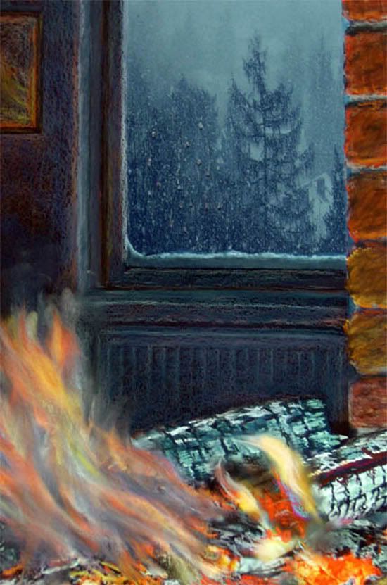 Ярко поленья в камине пылают,