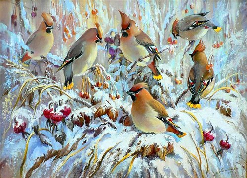Хохлатые на ветках свиристели,