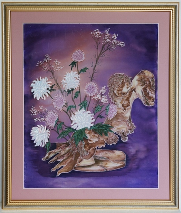 Картина. "Хризантемы". Батик. Авторское исполнение.