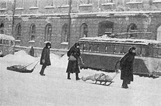 Снежно в блокадном голоде.