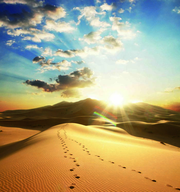 в бесконечной горячей пустыне,