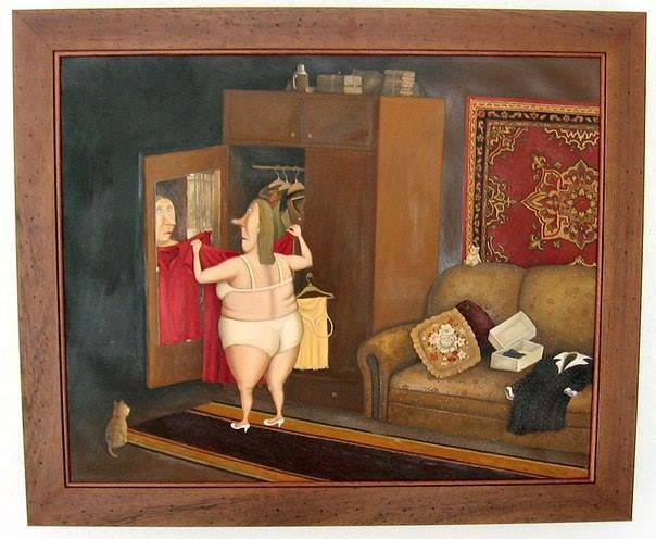 Она может сожалеть только об одном, что ей не хватает третьей руки, чтобы хорошенько призадумавшись, подпереть тройной подбородок.