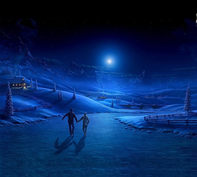 В сиянье серебристом на снегу,