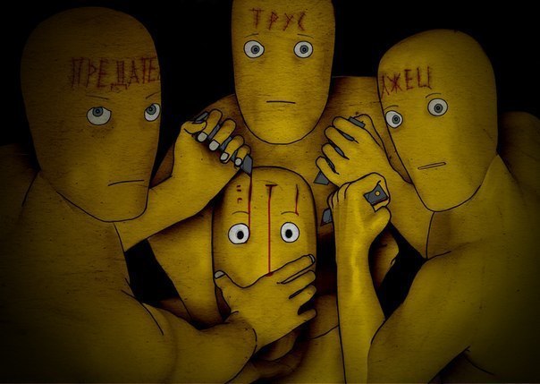 Теперь мы с изумлением наблюдаем последствия массового психоза, как то: истребление на востоке Страны своих соотечественников; провокации в отношении соседа; бесконечное и беззастенчивое враньё; сваливание всего, что только можно на Россию, делая её виновницей всех проблем; а заодно науськивание всех тех, кому Россия поперёк горла встала, делая из нас монстра и прося защиты от нас ; разжигание вражды между народами всеми способами; нагнетание страха войны в сознание граждан и угрозы нашего нападения; и как апофеоз - объявление военного положения.
