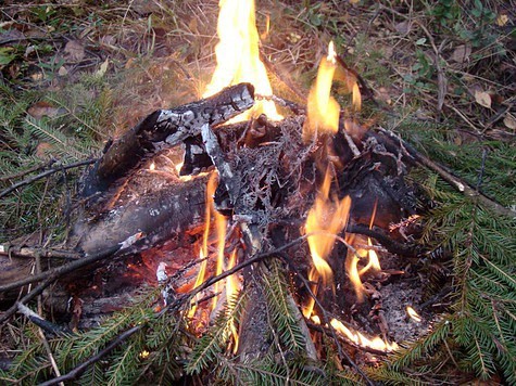 Чадит только лапка сосны.