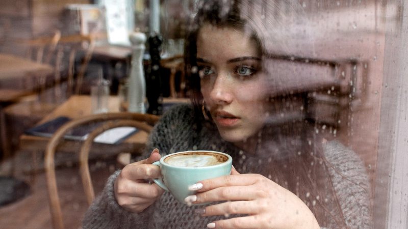 Пить чашку кофе за столом