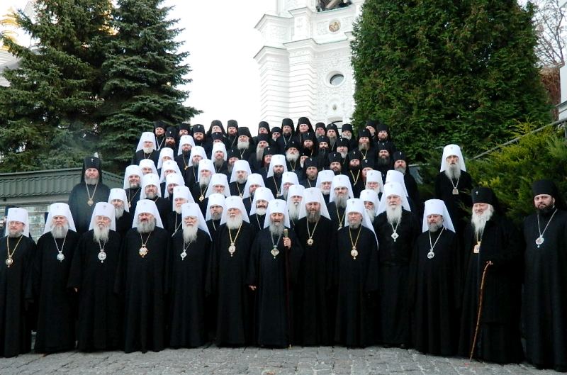На фото - На соборе епископов УПЦ, состоявшемся 13 ноября в Киево-Печерской лавре, принявшем решение не участвовать в создании автокефальной Украинской православной церкви. Собор возглавил Предстоятель УПЦ Блаженнейший Митрополит Киевский и всея Украины Онуфрий.