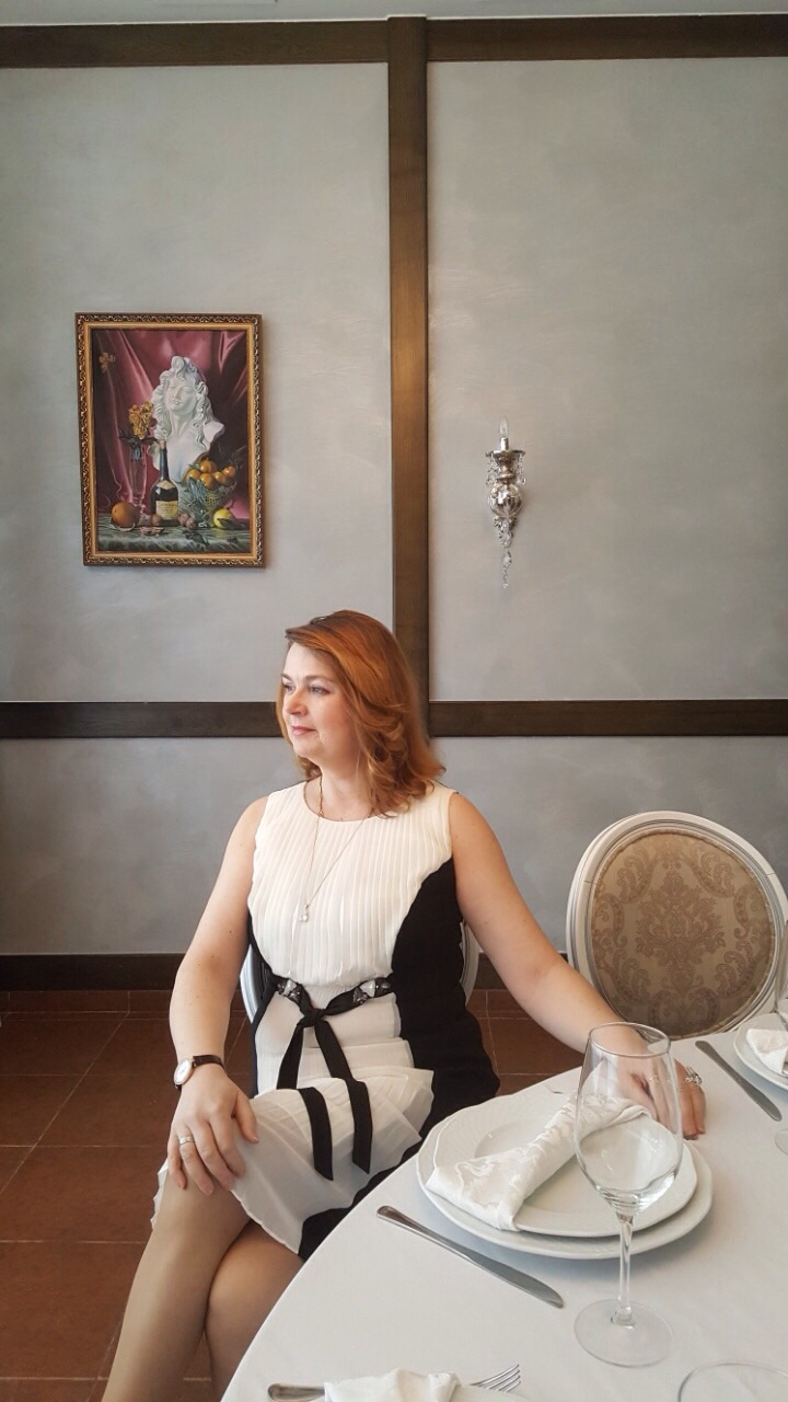 В бальном платье,