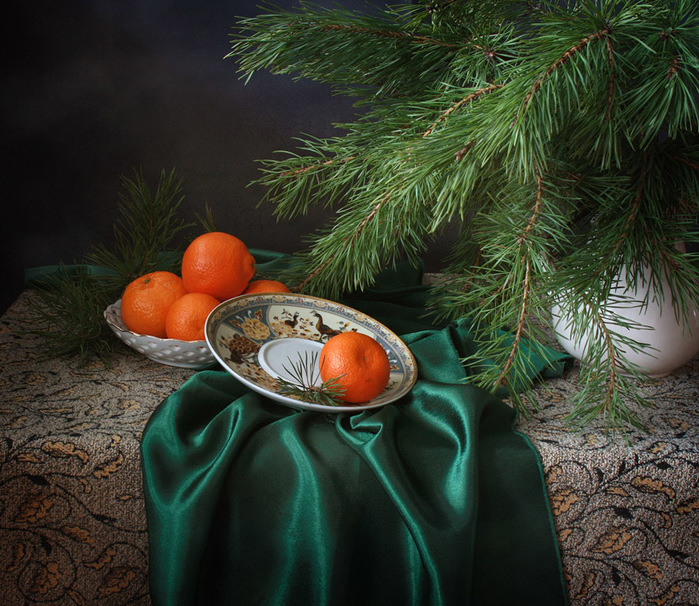 Апельсины, ель, салфетки,