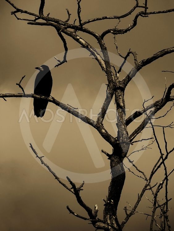 Ворона одинокая сидела на суку.