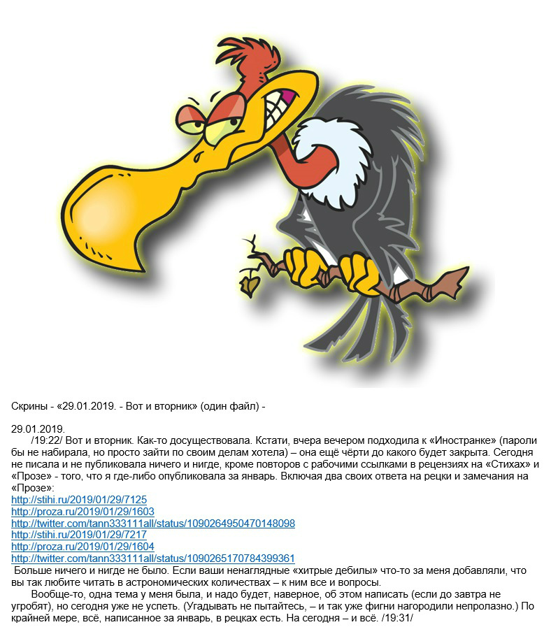 Скрин ссылок на - «29.01.2019. - Вот и вторник» -