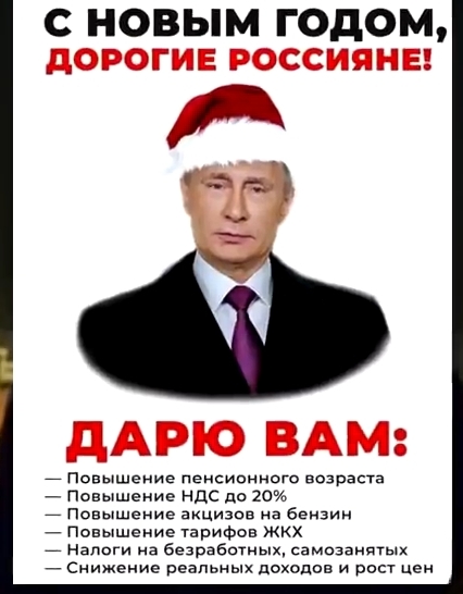 Путин поздравил всех пенсионной реформой, повышением цен и акцизов, а так же новыми налогами.