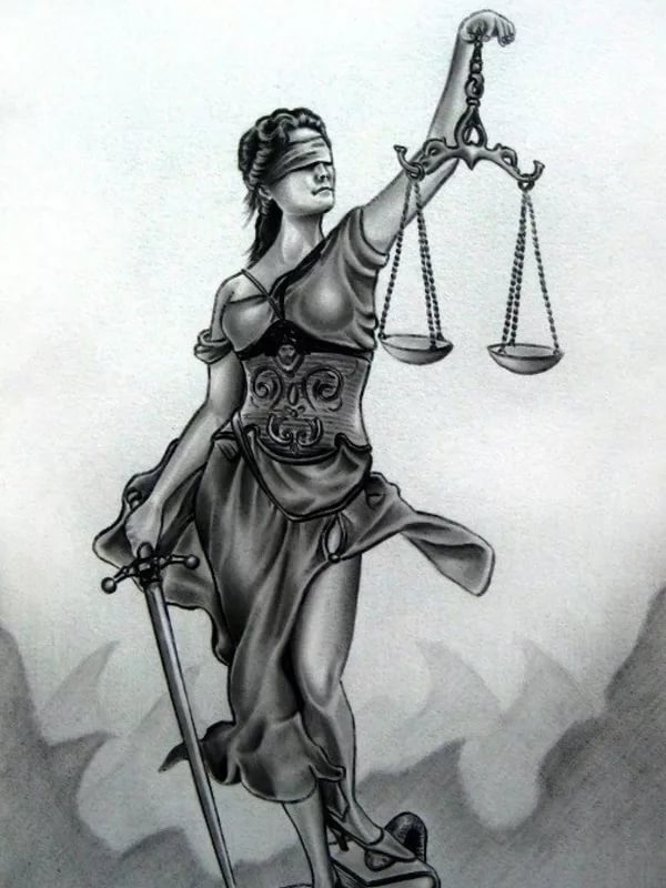 Но помним: у неё повязка на глазах и острый меч!