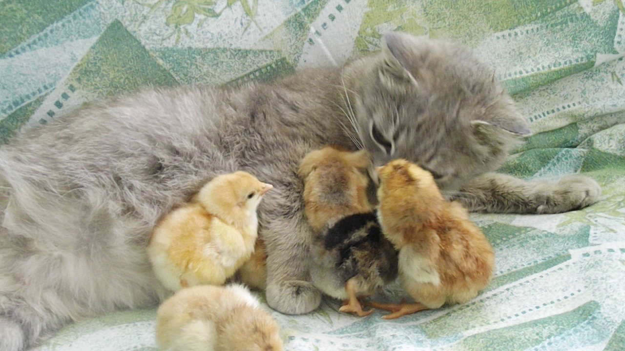 Счастье кошки и цыплят