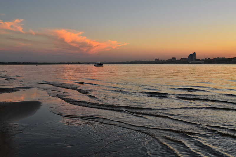 С берега Волги ловить убегавший закат,