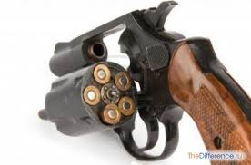 с револьвером зажатым в руке?