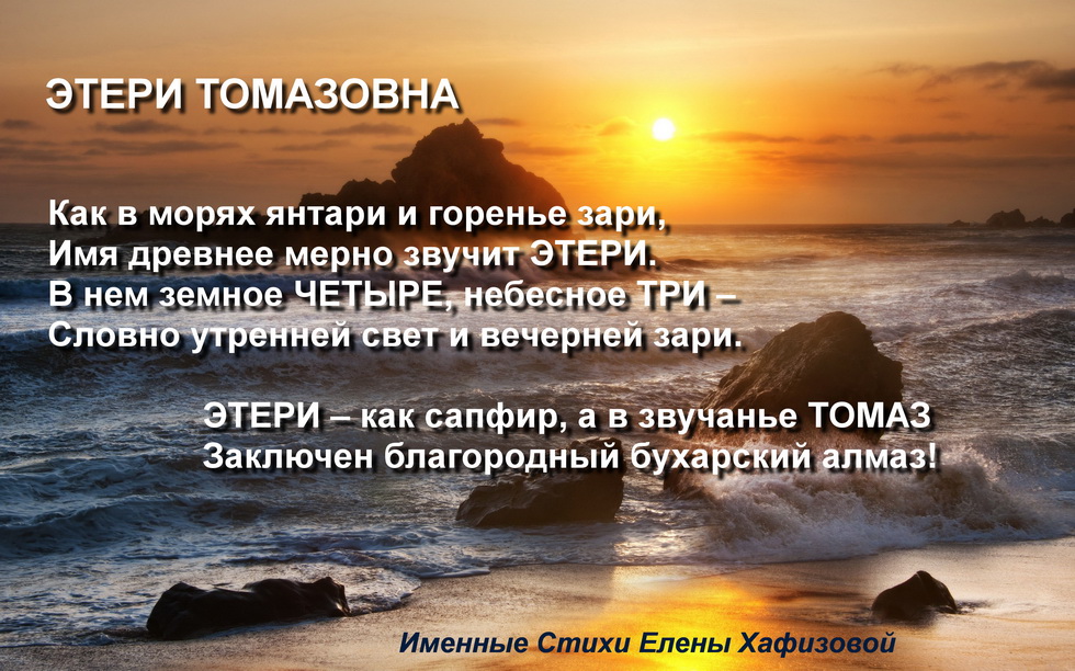 Имя древнее мерно звучит ЭТЕРИ.