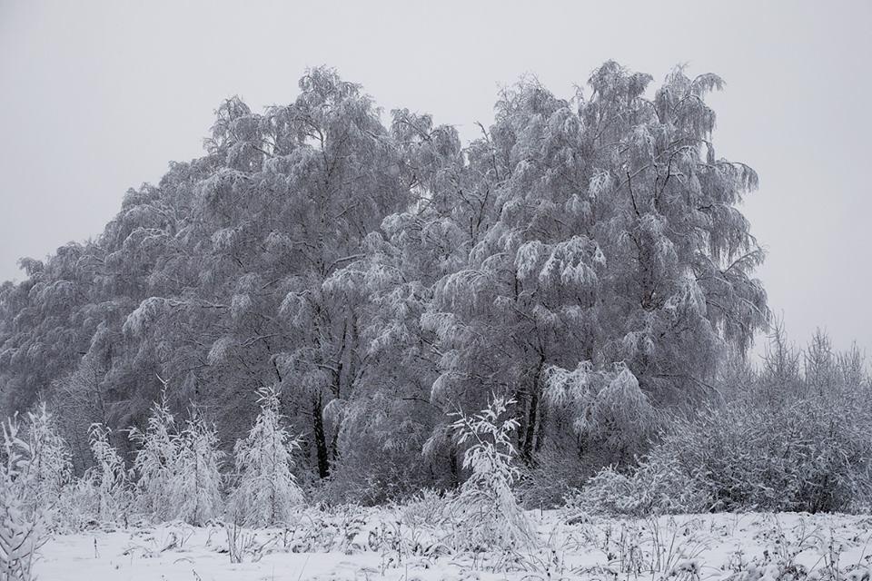 В инее деревья нежные, искрящие.