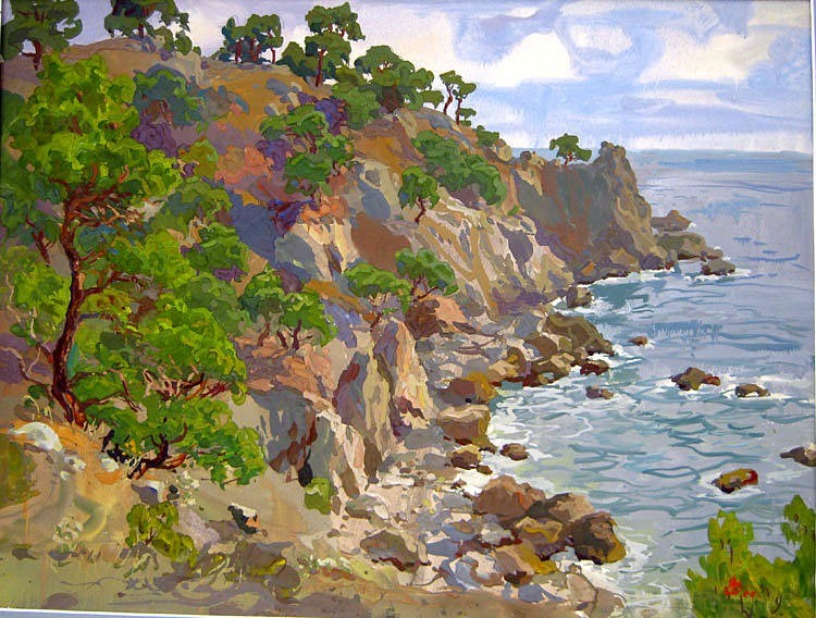 Живопись-Владимир Ольхов "Скалы" (гуашь)
