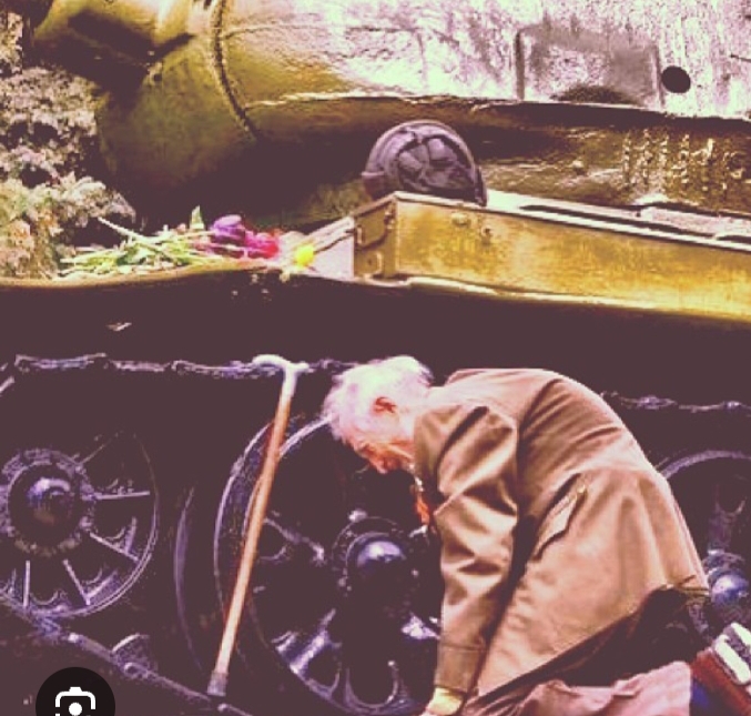 У дедушки, что стоял возле танка,